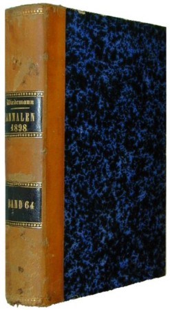 | [RONTGEN ] Roentgen, Wilhelm Conrad. “Ueber eine neue Art von Strahlen” [ “About a new kind of rays” ], parts I and II. WITH: “Weitere Beobachtungen uber die Eigenschaften der X-Strahlen” [“Further observations about the properties of X-rays” ], pp.1-37 in Annalen der Physik, Neue Folge, Vol. 64. Leipzig: Barth-Verlag, 1898. (The full volume, 812 pages). Octavo, contemporary half sheep over marbled boards. $2400.
